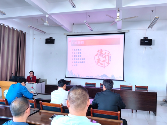 李晓琼从先秦思想家老子《道德经》中之玄德中的“道生成万事万物,德养育万事万物”开始,以“修师德塑师风是一辈子的事”做结束,阐述了师德修养要与弘扬民族精神和时代精神结合,要践行社会主义核心价值观、要爱岗敬业、做“四有好老师”,以及如何做到爱岗敬业、奉献社会。报告生动具体,富有感染力。