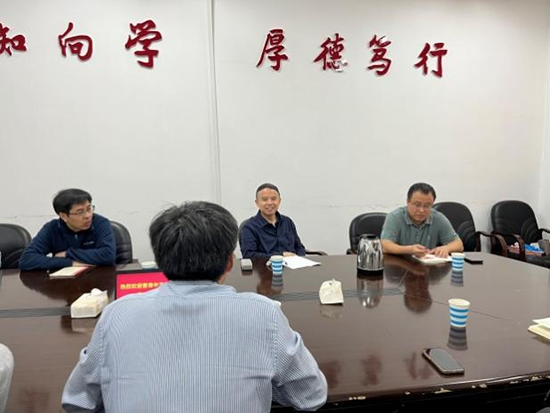 副院长彭虎向邹军教授介绍了团队近期研究成果并就存在的问题进行了汇报。邹军教授同参会人员进行了交流,就有关科学问题作了深入讨论,并对团队开展的研究课题给予了高度评价,认为该领域的研究是基础数学理论解决重要应用问题的一个积极探索。