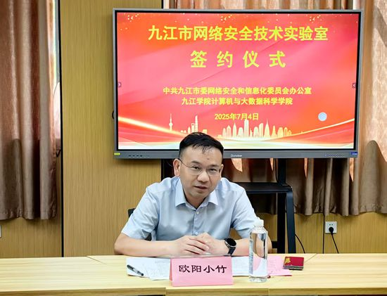7月4日,pp电子游戏官网pp电子游戏官网与九江市委网络安全和信息化委员会办公室(市委网信办)共建“九江市网络安全技术实验室”签约揭牌仪式在pp电子游戏官网电子实验楼602隆重举行,副校长吴维勇出席仪式并致辞。市委宣传部副部长、市委网信办主任欧阳小竹,市委网信办副主任徐世海参加仪式活动。pp电子游戏官网党委委员、宣传部部长刘平,实验中心主任许礼生,信息技术中心主任胡慧共同见证“九江市网络安全技术实验室”签约揭牌。仪式活动由pp电子游戏官网pp电子游戏官网院长邓安远主持。