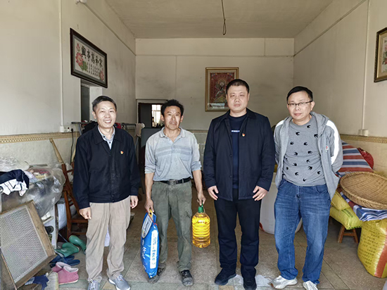 下午,学院党委书记一行4人分别走访慰问村里2户结对帮扶户。在困难户汪松荗家中,党委书记邹国辉详细询问老人的身体状况、家庭收入及生活需求并送上米油等生活物资。“感谢党和学院的关心!现在医保报销比例高了,生活还有政府补助,日子越来越有盼头!”汪大叔握着邹书记的手激动地说。