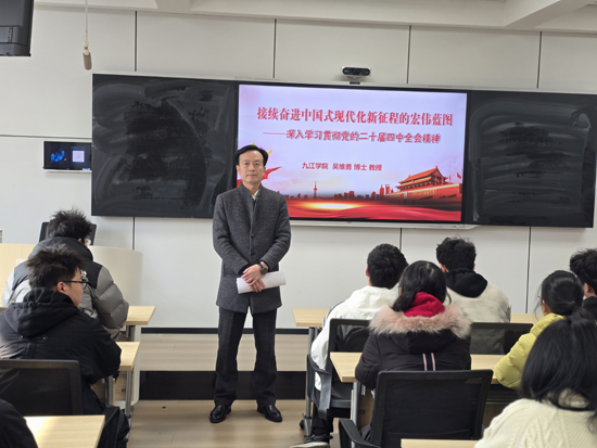 12月18日下午,校党委委员、副校长吴维勇教授走进pp电子游戏官网计科A2553班课堂,为同学们带来了一堂题为《学习贯彻党的二十届四中全会精神,共绘中国式现代化新蓝图》的专题思政课。此次授课旨在引导青年学子深刻领会党的二十届四中全会精神,激发他们的时代使命感和社会责任感。