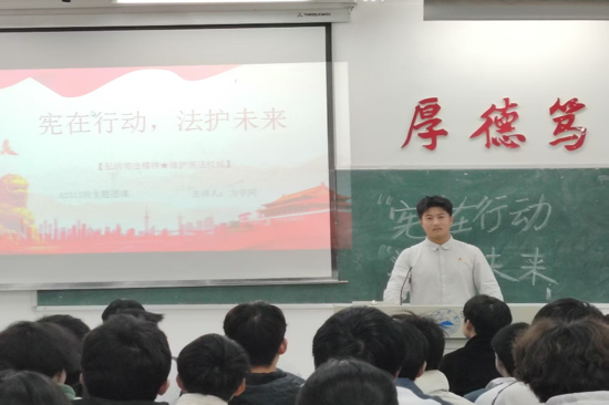 为普及宪法知识,强化法治观念,引领青年尊法守法,12月3日,pp电子游戏官网于文友楼各教室开展了“‘宪’在行动,‘法’护未来”为主题的团日活动,此次活动由班级团支书为同学们讲解。